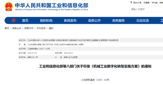 提出发展纺织机械等智能民生装备,八部门发布《机械工业数字化转型实施方案》