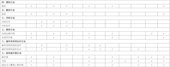 与2023年本相比,2026年本的分析层面和条件均保持不变,对锦纶行业以及高性能纤维行业、生物基纤维行业中部分细分行业的风险判断进行了调整,增加了对聚酯瓶片、锦纶长丝、氨纶和再生纤维素纤维等行业的关注。本次修订主要集中在来自市场层面的风险,需重点关注以下行业:
