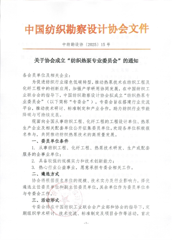 关于协会成立“纺织热泵专业委员会”的通知